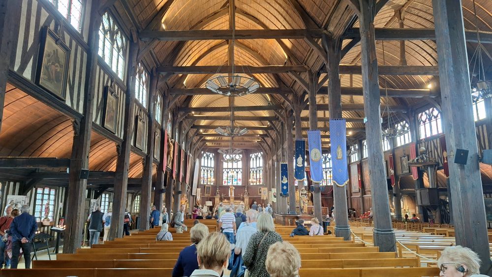 Dacă la Le Havre nu mai ai prea multe vechituri de admirat, că au pierit în bombardament, îți scoți pârleala la Honfleur, care e un mic portuleț înțesat de case vechi din lemn. Inclusiv biserica e o ditamai hală din lemn, care-și poartă vârsta și arată ca o construcție pescărească.