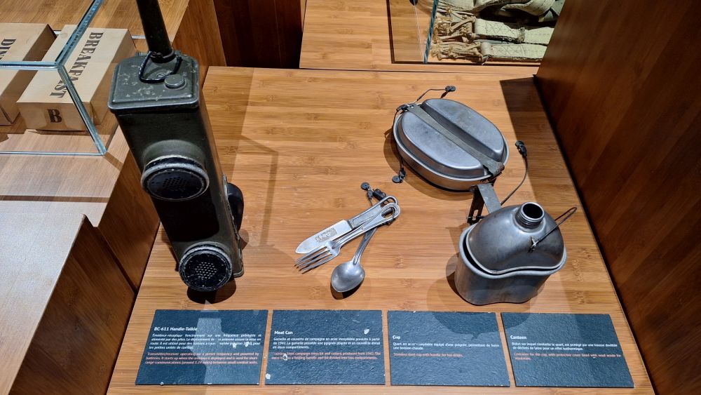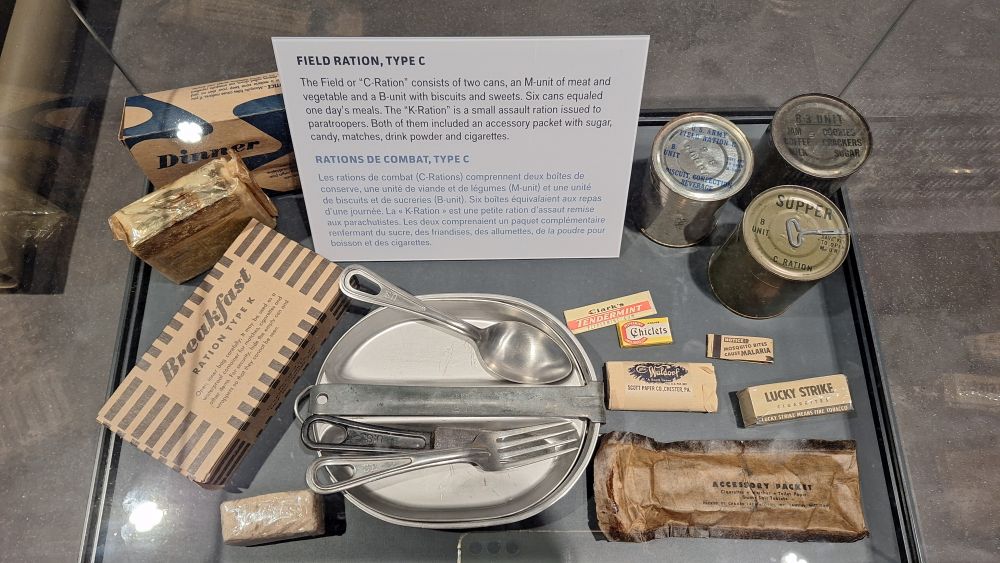 Alte chestii remarcate la muzeul ăsta, dar și la celelalte, despre al doilea război, au fost dotările militarilor, rațiile de mâncare și tot felul de efecte personale, pe cât de primitive, pe atât de înduioșătoare.