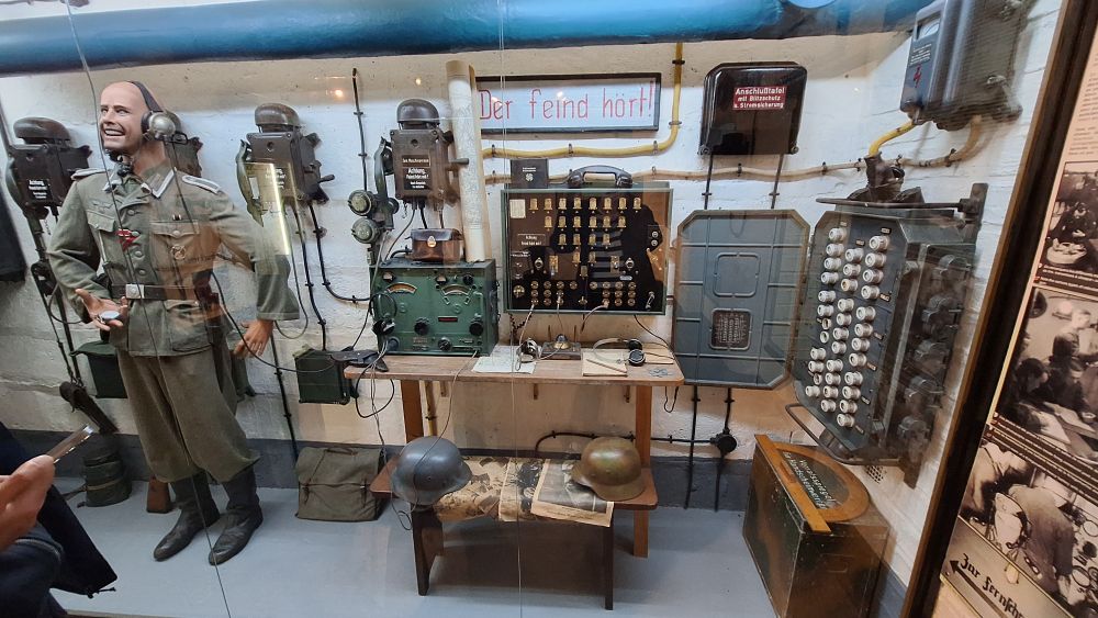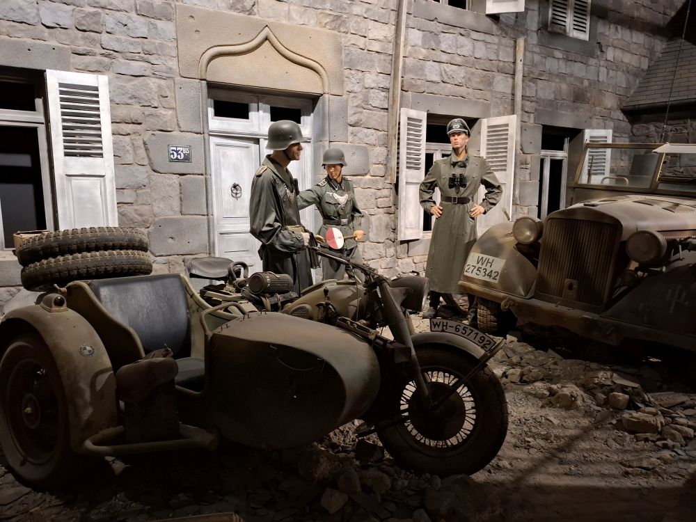 Deși te cam face de cap o vizită la un muzeu din ăsta și după ce vezi unul-două simți că deja le-ai văzut pe toate, realitatea e că nici nu știi când trece timpul când stai să cercetezi toate obiectele alea care par azi din altă lume. Micile efecte personale ale soldaților aliați, rațiile de mâncare, aparatura care azi pare greoaie, dar atunci probabil era tot ce avea mai bun armata americană, până și prezervativele apar prin vitrinele alea de muzeu, carnețelul cu expresii franțuzești transcrise fonetic în engleza americană, ca să știe soldatul cum să se facă înțeles de populația băștinașă, care oricum după toate aparențele l-a primit cu bucurie și flori.