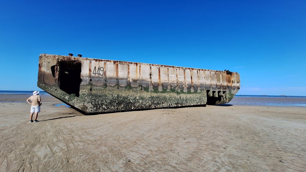 Înțeleg că niște ingineri englezi au inventat niște chestii ca niște pontoane plutitoare, tractate spre țărmul normand, cu care au putut să-și amenajeze pe plaja pe care au debarcat ei – Gold – un soi de port improvizat, pe care au putut apoi să-și aducă la mal echipamente de luptă: tancuri, mașini etc. Câteva din pontoanele alea se mai văd și azi pe plaja Gold, ca niște epave eșuate cotropite de alge.