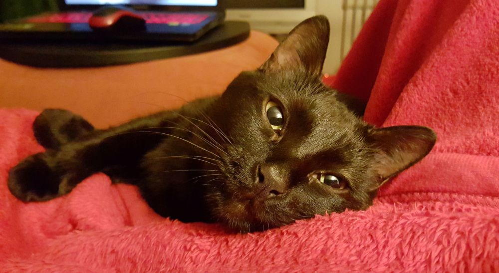 Nici nu-mi plăceau pisicile. Avusesem câine, într-un trecut îndepărtat, și deci mi se părea o incompatibilitate. Totuși am cărat-o după mine până la Poștă, unde mă dusesem cu treabă, și înapoi. Se culcușise pe geanta mea foto (aveam pe vremea aia un Canon, mă dădeam fotograf în devenire) și a mieunat de câteva ori până acasă, dar cum s-a văzut înăuntru s-a suit direct pe laptop și acolo a rămas. De unde i s-a tras și numele.
