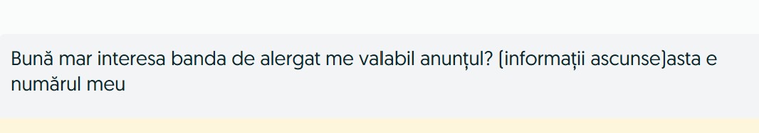 De câteva luni mă tot bătea mama la cap s-o scap de banda de alergare pe care i-o cumpărasem în 2018, cu ocazia curei de slăbire pe care a ținut-o atunci. N-a mai folosit-o după pandemie și a stat pliată și lipită de un perete în așteptarea unui scop sau a deciziei de a o vinde. S-a întâmplat să mă mobilizez să fac asta exact acum de sărbători, când am fost acasă, așa că i-am făcut câteva poze și am pus-o pe două site-uri de anunțuri, ca s-o mărit.