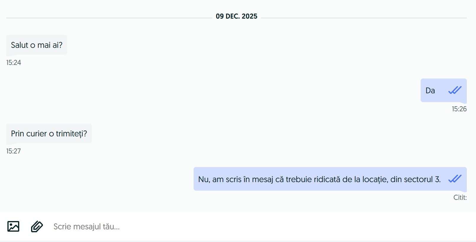 Am zis că OK, e greșeala mea că nu am scris mai clar în mesaj că trebuie să vină s-o ia, așa că am modificat anunțul, adăugând explicit și că NU trimit prin curier. Apoi au încetat astea cu trimisul prin curier și au început alea cu „ultimul preț?”. Pe majoritatea le-am ignorat, au fost destule mesaje de la oameni care îmi propuneau 200 sau 250 de lei sau 300 de lei, deși explicasem clar în anunț cum am ajuns la 450 de lei, care reprezenta mai puțin de jumătate din cât costă banda azi.