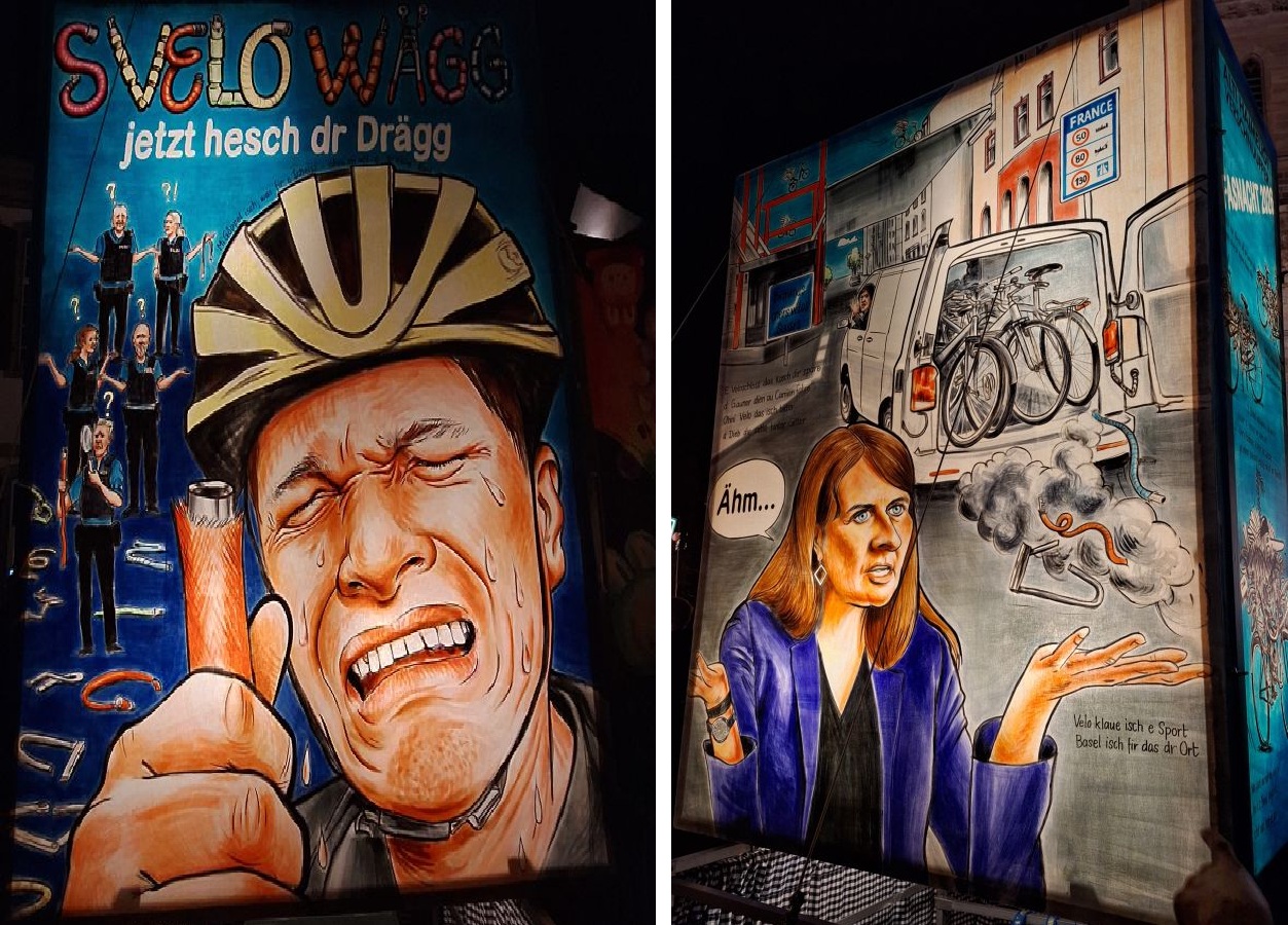 Deși n-ai fi crezut că au de ce se plânge elvețienii ăștia de la Basel, să știți că erau și niște lanterne cu mesaj social critic. De exemplu era una în care apărea fantoma lucrărilor de la nu știu ce tramvai, care va fi în șantier și în 2080. Probabil or avea și ei ceva ca metroul nostru din Drumul Taberei, care-i exasperează. Sau alta pe care era tratată problema furturilor de biciclete, la care poliția ridică din umeri neputincioasă, iar pe verso era desenată o dubă plină cu bicle furate, care se îndrepta spre Franța. Ca să vezi, bine că nu au graniță cu România.