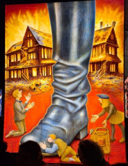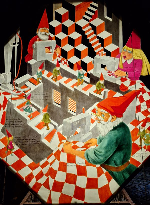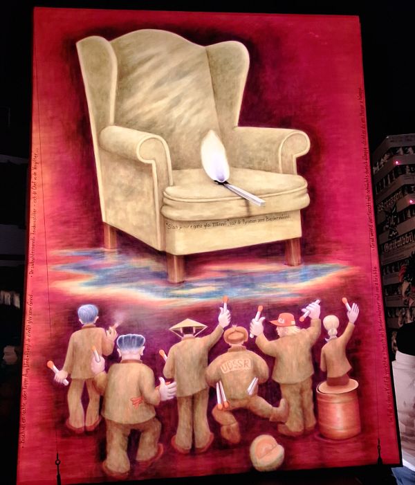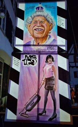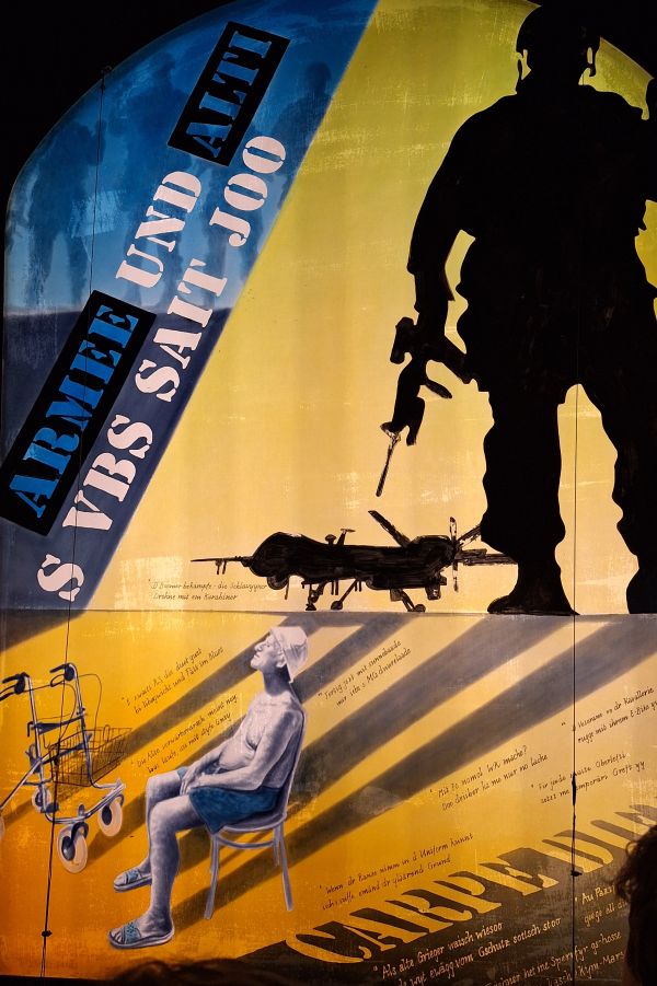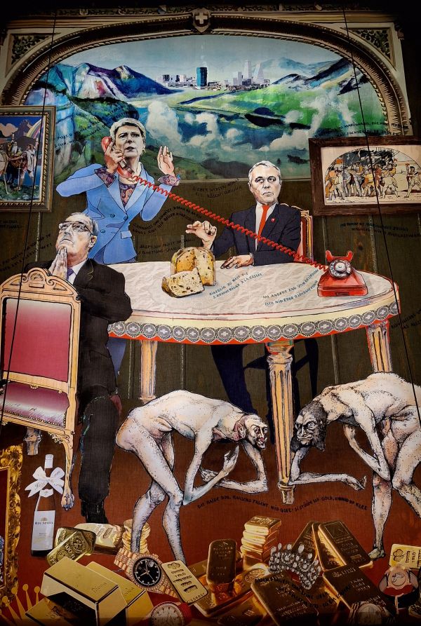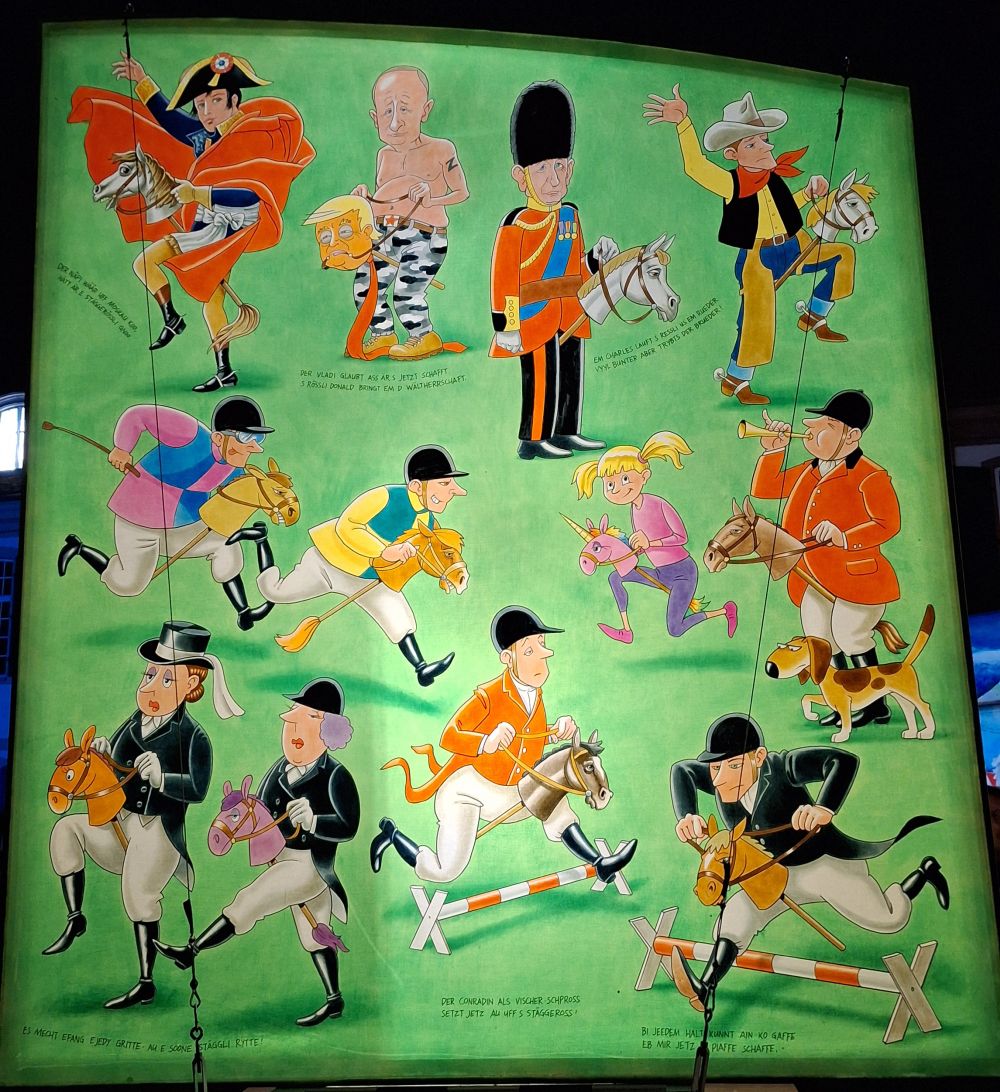 O mulțime de alte lanterne ironizau diversele slăbiciuni umane, de la foame de bani, operații estetice la preocupări superficiale, în timp ce lumea arde, vorba aia. Și Elveția era ironizată pe câteva lanterne, pe motiv că afișează doar declarativ o neutralitate care se evaporă în fața banilor. Cred că în mare am înțeles mesajul, dar au rămas destule la care ne-am uitat ca analfabeții, pe lângă că ne lipseau o grămadă de repere culturale de-ale lor, nici germana elvețiană nu e floare la ureche.