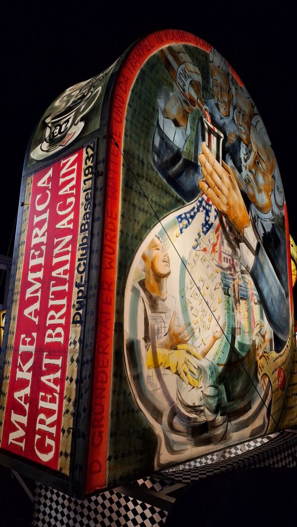 Nu știu cum o fi fost în alți ani, dar anul ăsta Trump a dominat de departe carnavalul din Basel, căci pe un sfert dintre zecile alea de lanterne era vorba de el, de tarifele lui, de relația lui cu Putin, de ambițiile lui etc. Vorbeam a doua zi cu un francez despre asta și m-a întrebat de ce mă mir, ce în România nu ne e teamă de Trump? I-am zis că nouă ne e mai teamă de Putin, că e mai aproape de noi, și a râs.