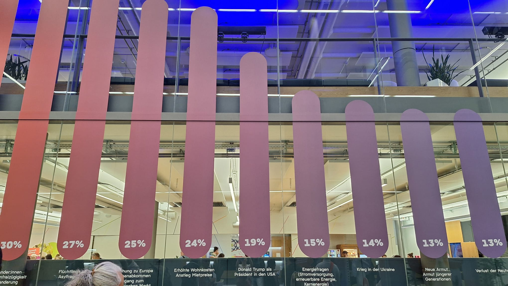 La ieșirea din Bayer era un ditamai peretele cu îngrijorările elvețienilor, culese dintr-un sondaj de opinie. Pe la mijloc printre ele (evident pe primul loc erau astea legate de sănătate) era din nou Trump, care-i îngrijorează pe 19% dintre elevețieni. Observasem asta și la Carnavalul din Basel.