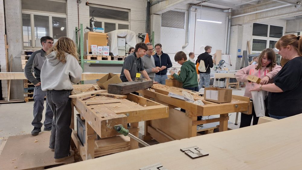 Aici am avut noroc că am găsit un om care ne-a vorbit în engleză și a părut bucuros de vizită. Ne-a explicat că produc inclusiv mobilier pentru avioane, custom, am și văzut diversele lor produse, iar în două dintre halele lor aveai ocazia să dai și la rindea, ceea ce s-au înghesuit să facă o mulțime de copii și nu numai.